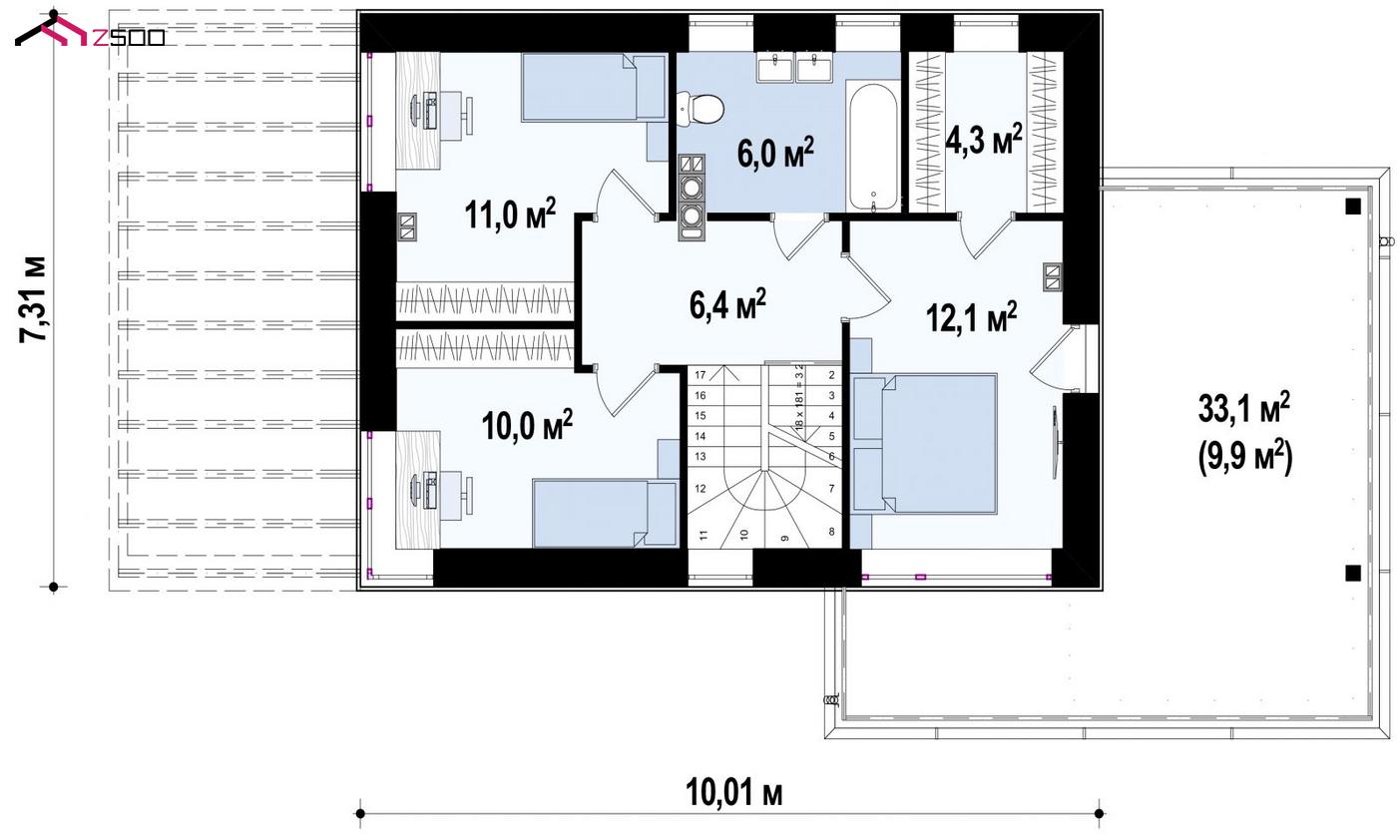 Zx63 B – версия проекта Zx63 с многоскатной кровлей.