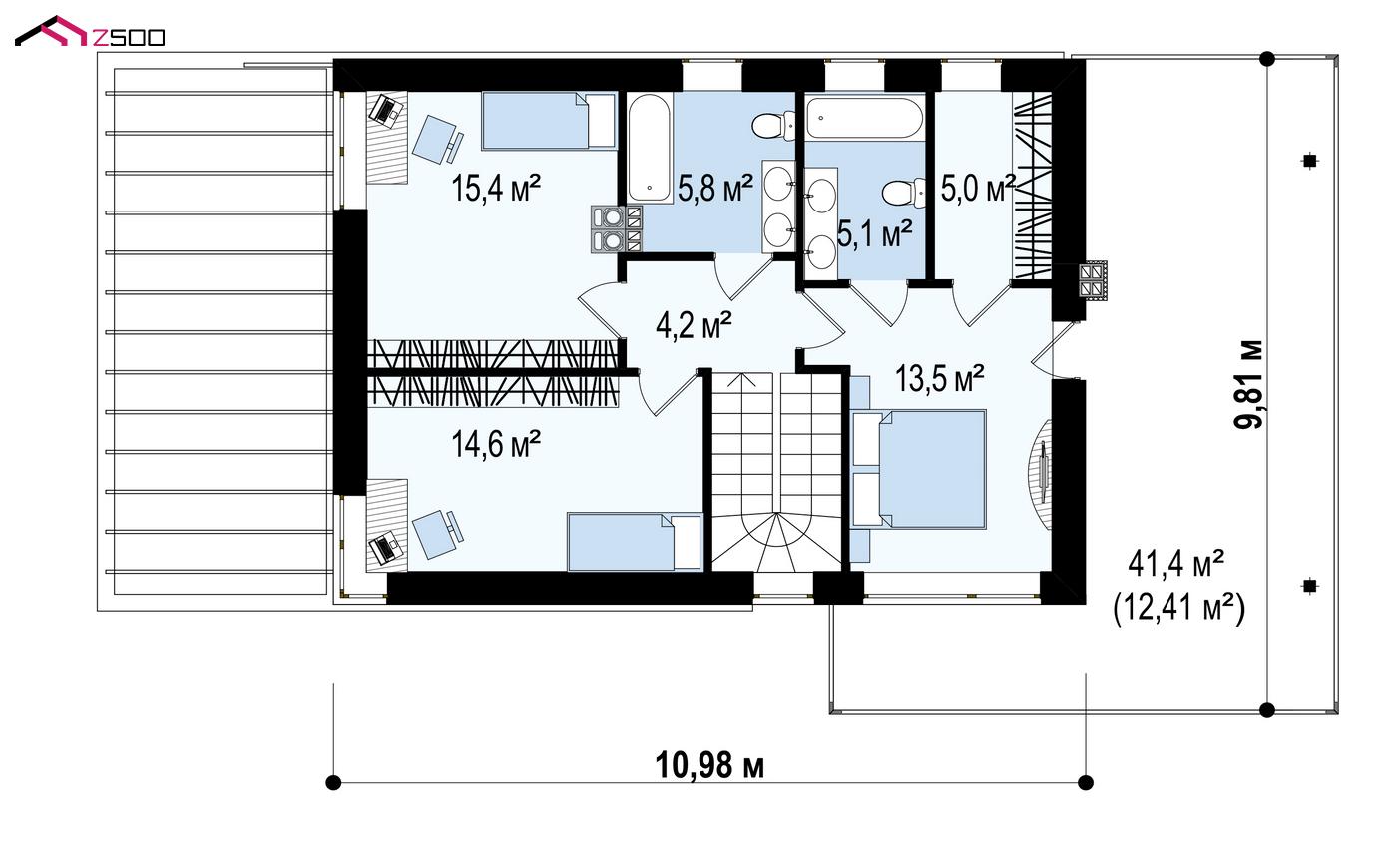 Zx63 B+P представляет собой проект функциональный двухэтажный дом с 4 спальнями и подвалом.