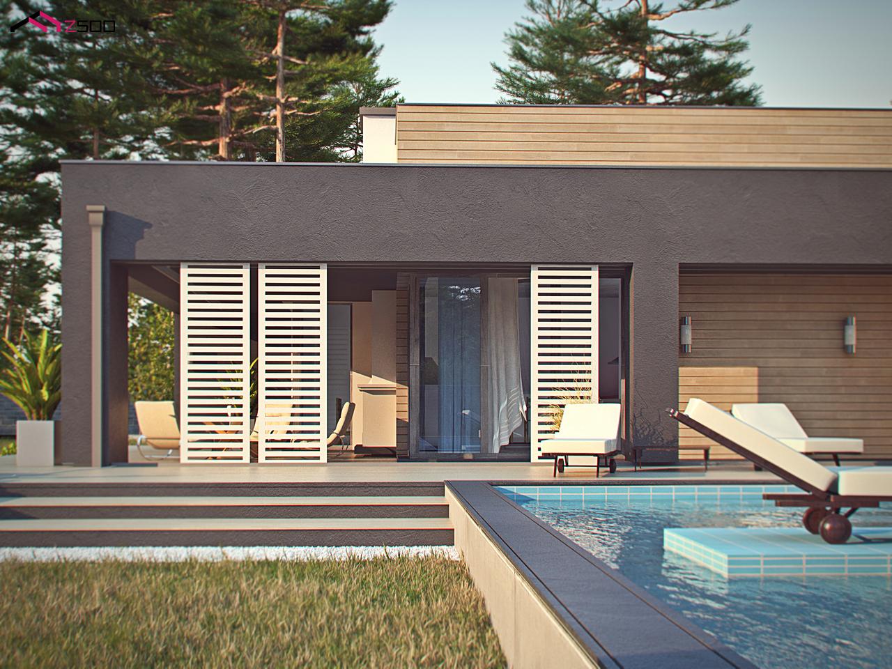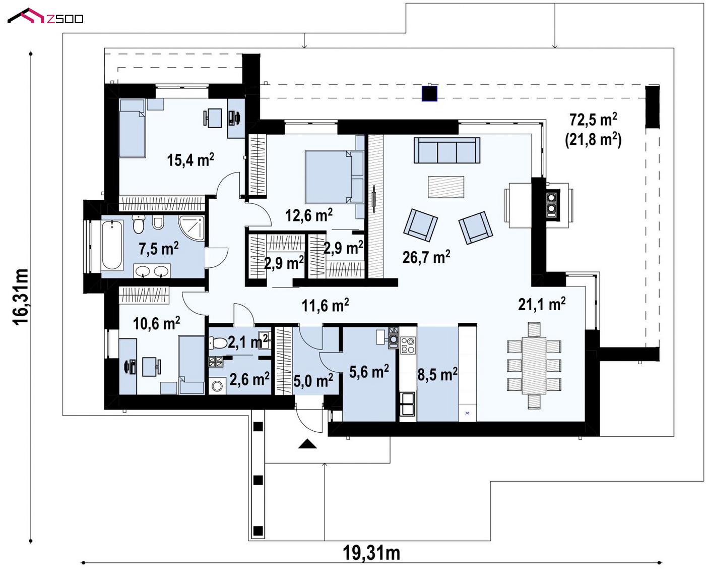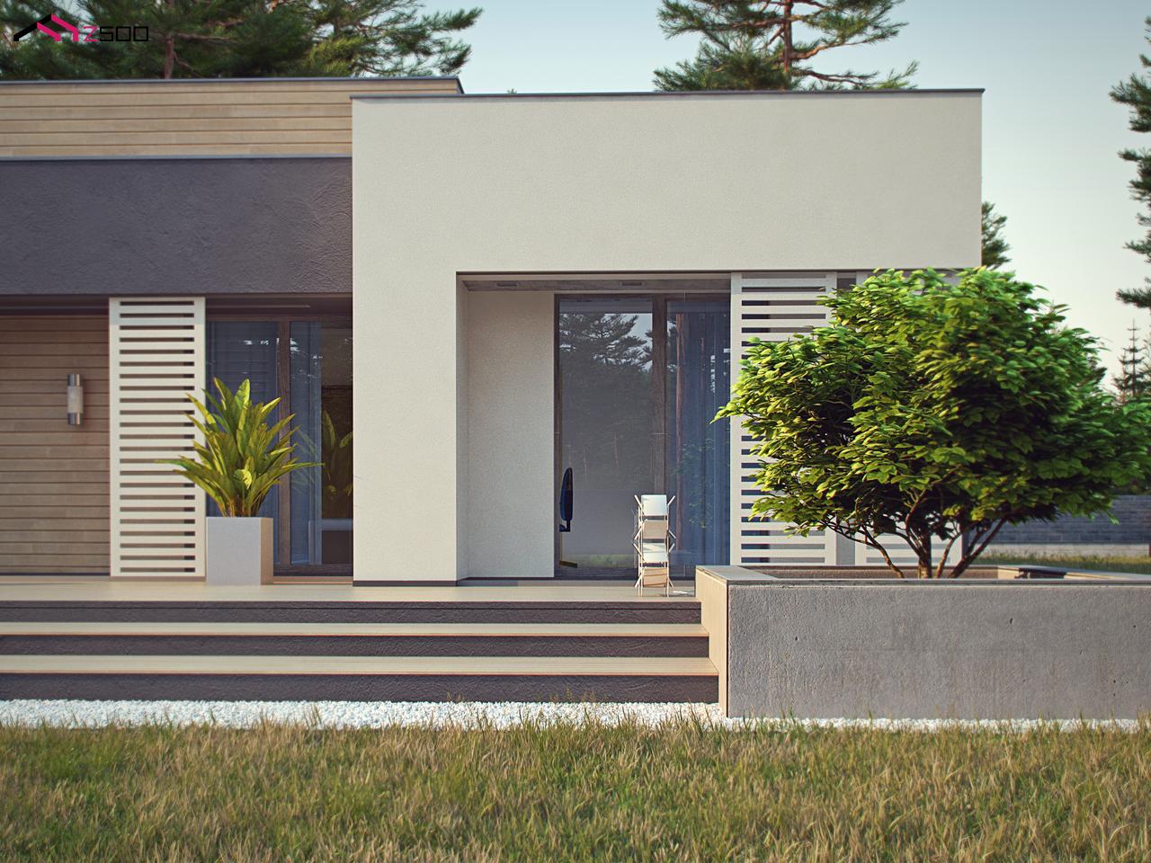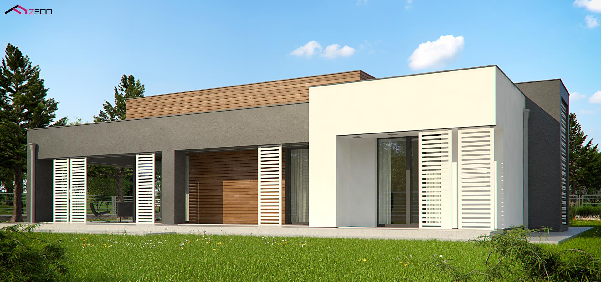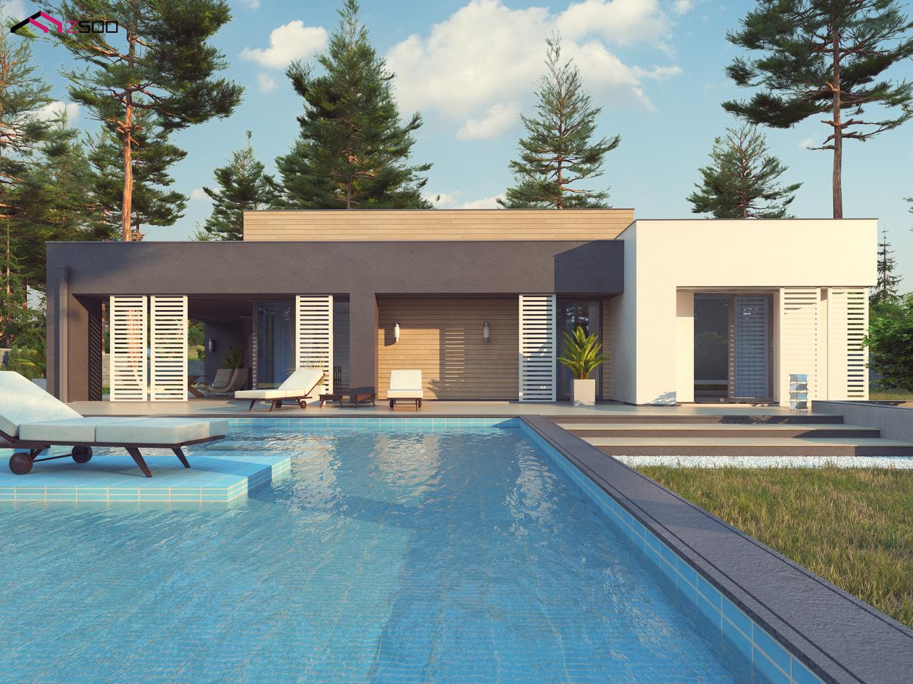 Дом, возведенный по проекту Zx65 +, придется по вкусу ценителям современной архитектуры и минималистичного дизайна. Наличие в доме трех комфортабельных спален делают проект удобным для семьи 2+2.