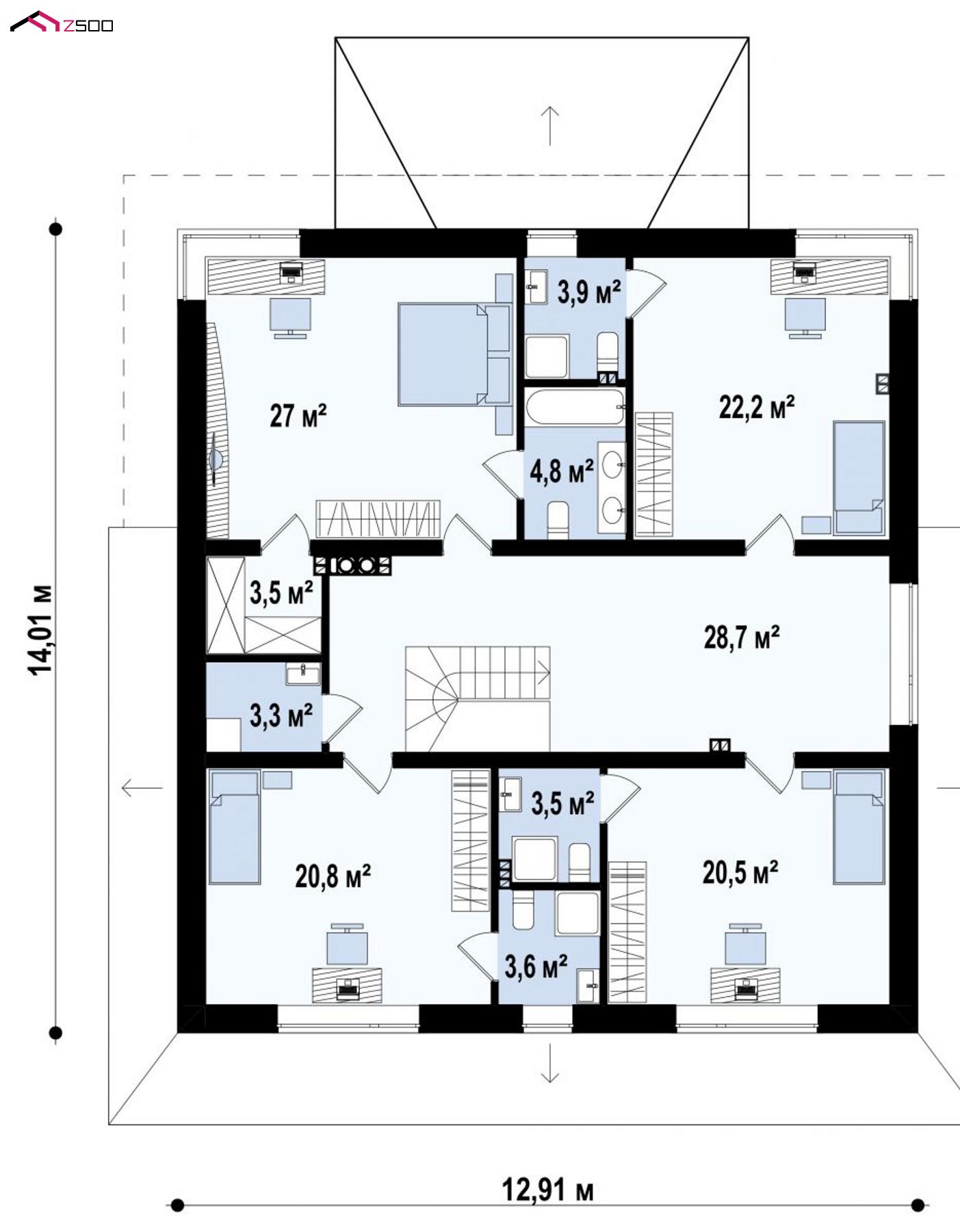 | Тип кровли | 4-скатная |
