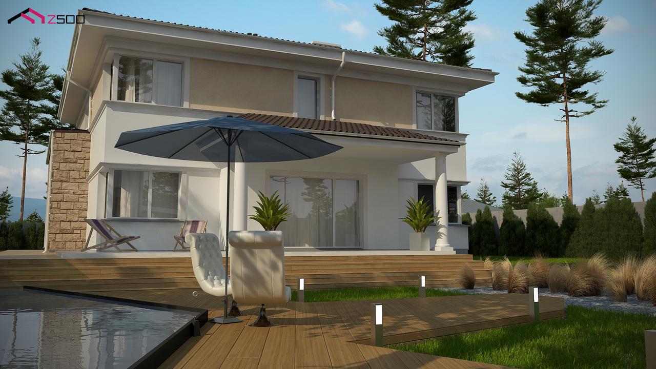 Zx66 представляет собой проект комфортной двухэтажной виллы в традиционном стиле. Большие площади остекления удачно привносят элемент современности в облик дома.
