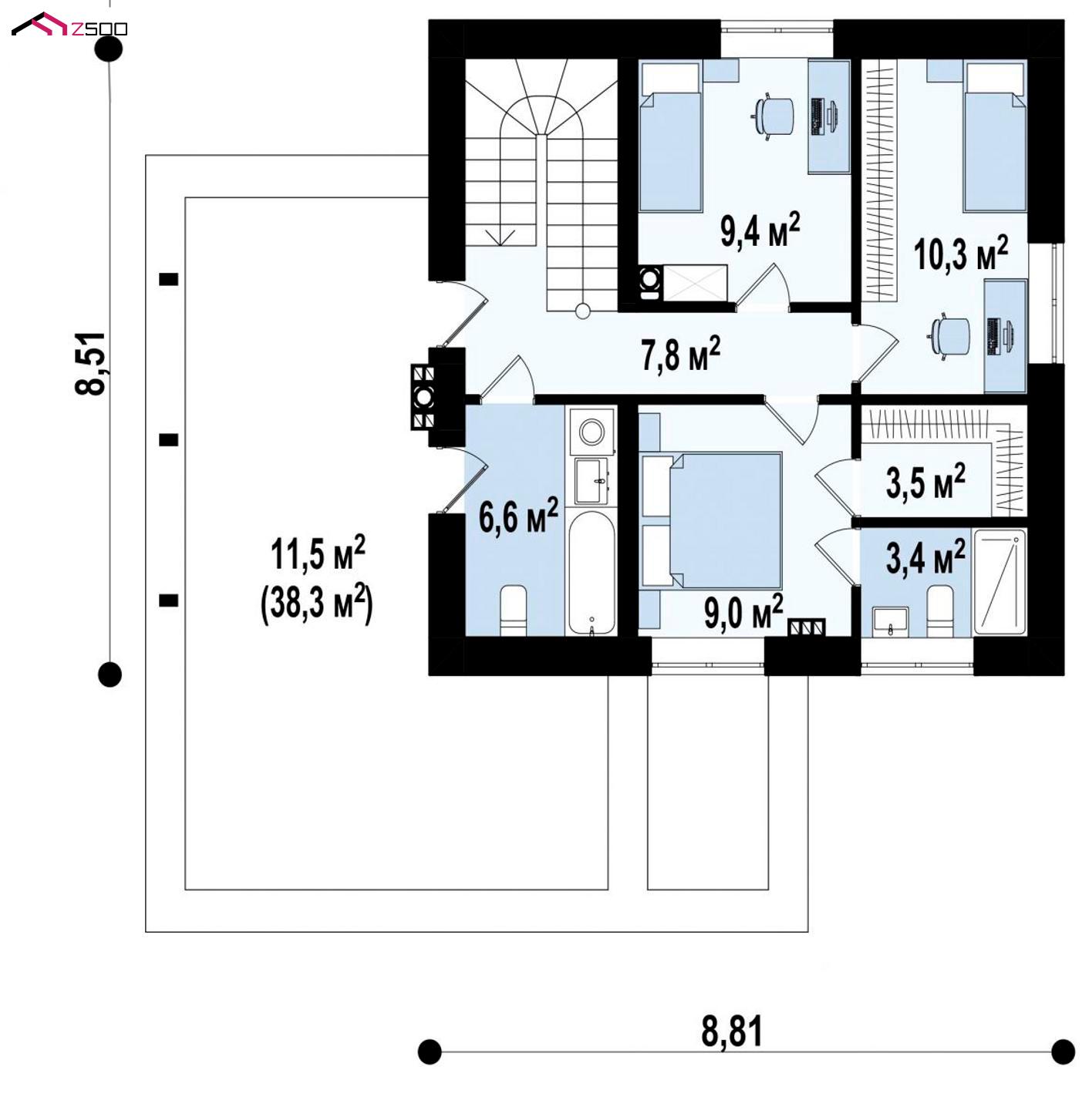 Двухэтажный коттедж Zx73 адаптированный для сейсмозоны