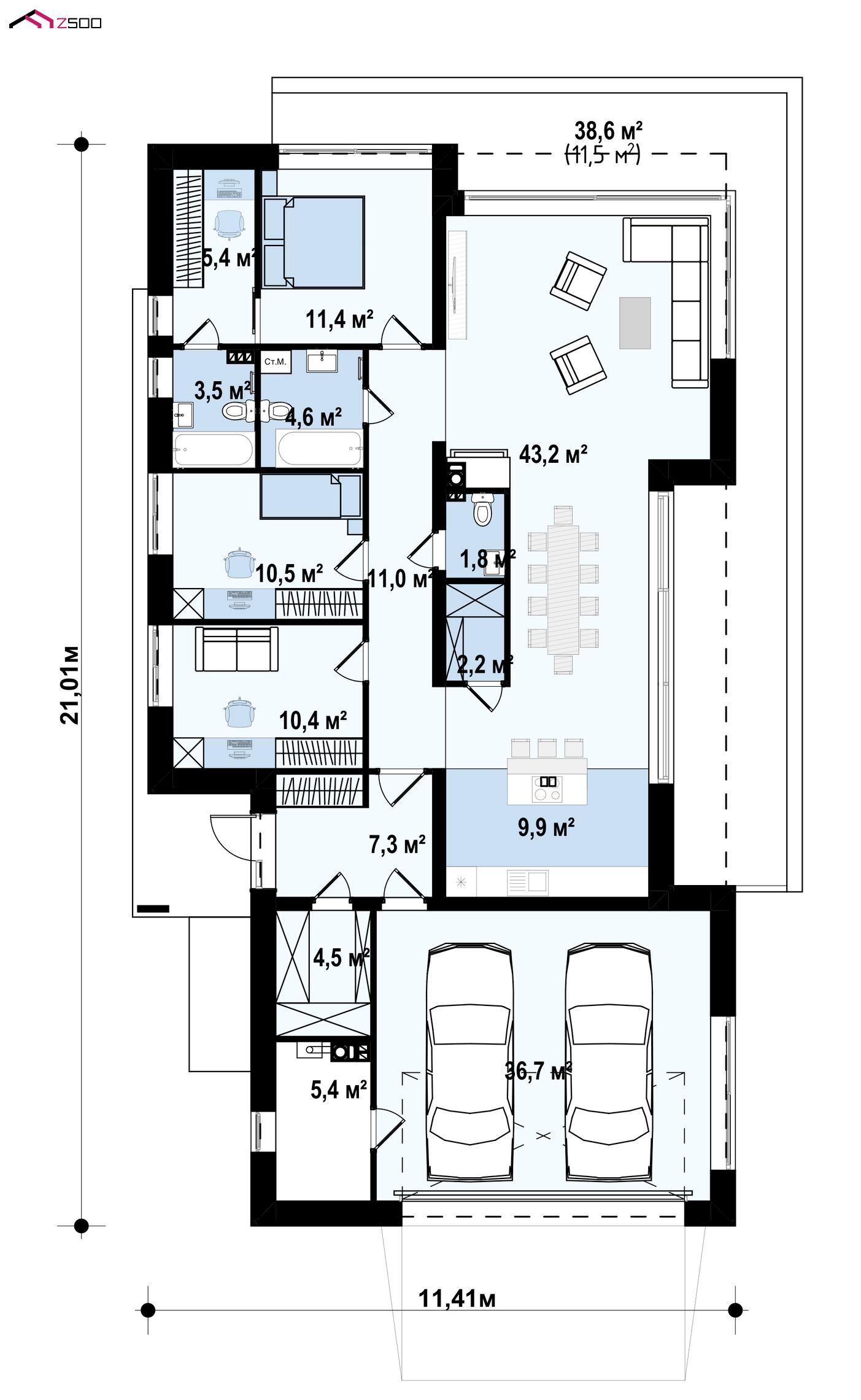 Проект Zx88 – идеальное предложение для любителей современной архитектуры и интерьеров с открытой планировкой.