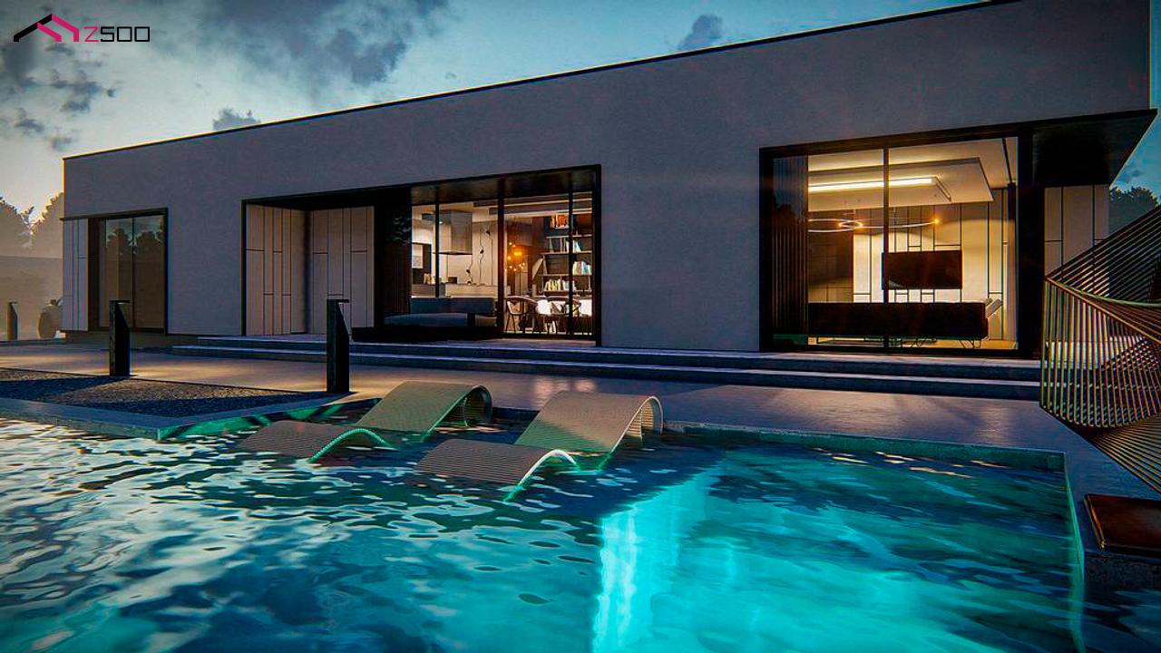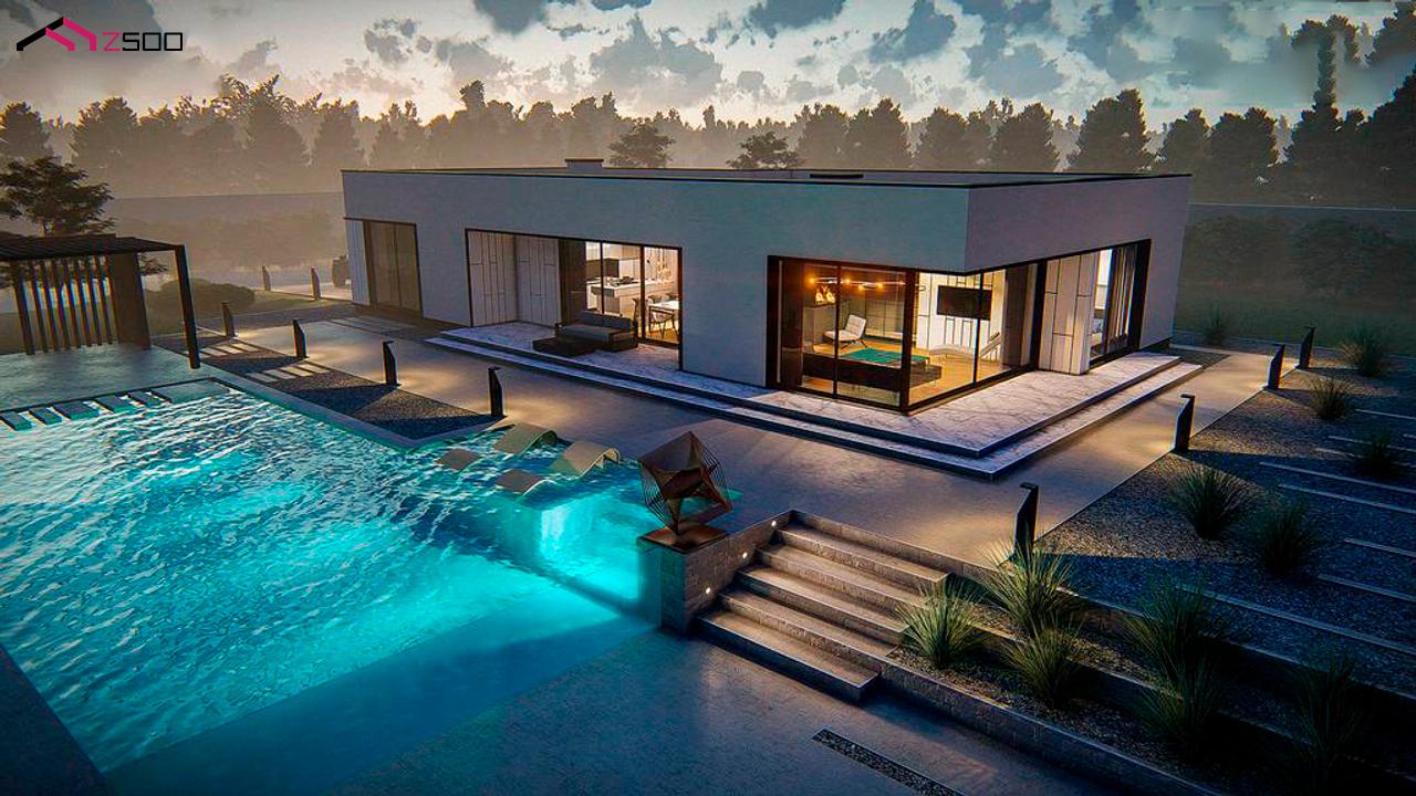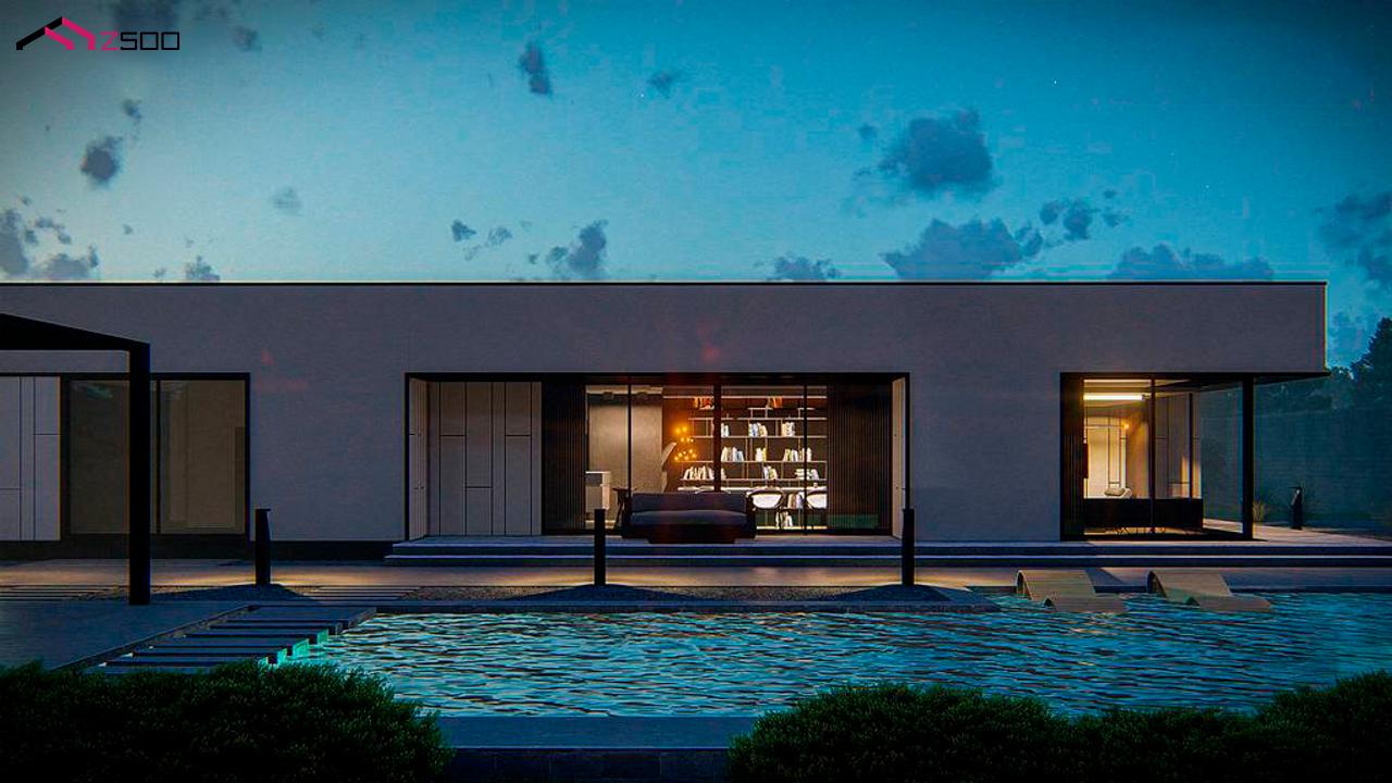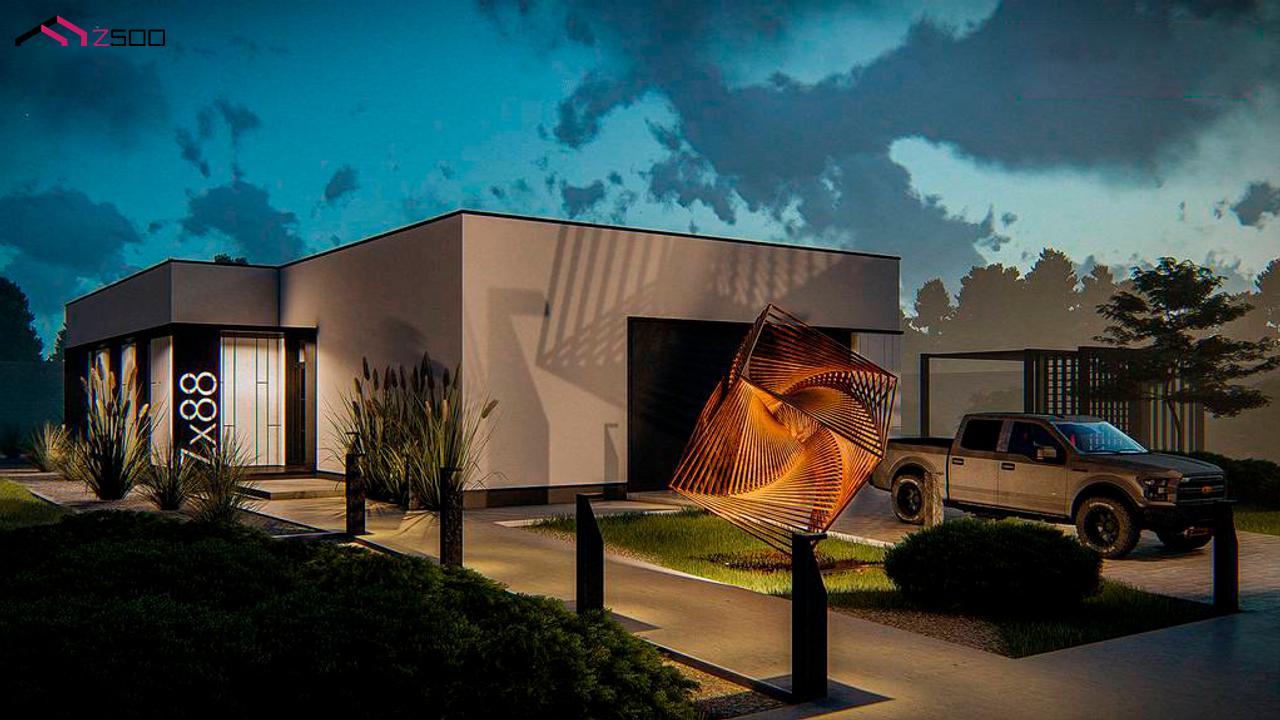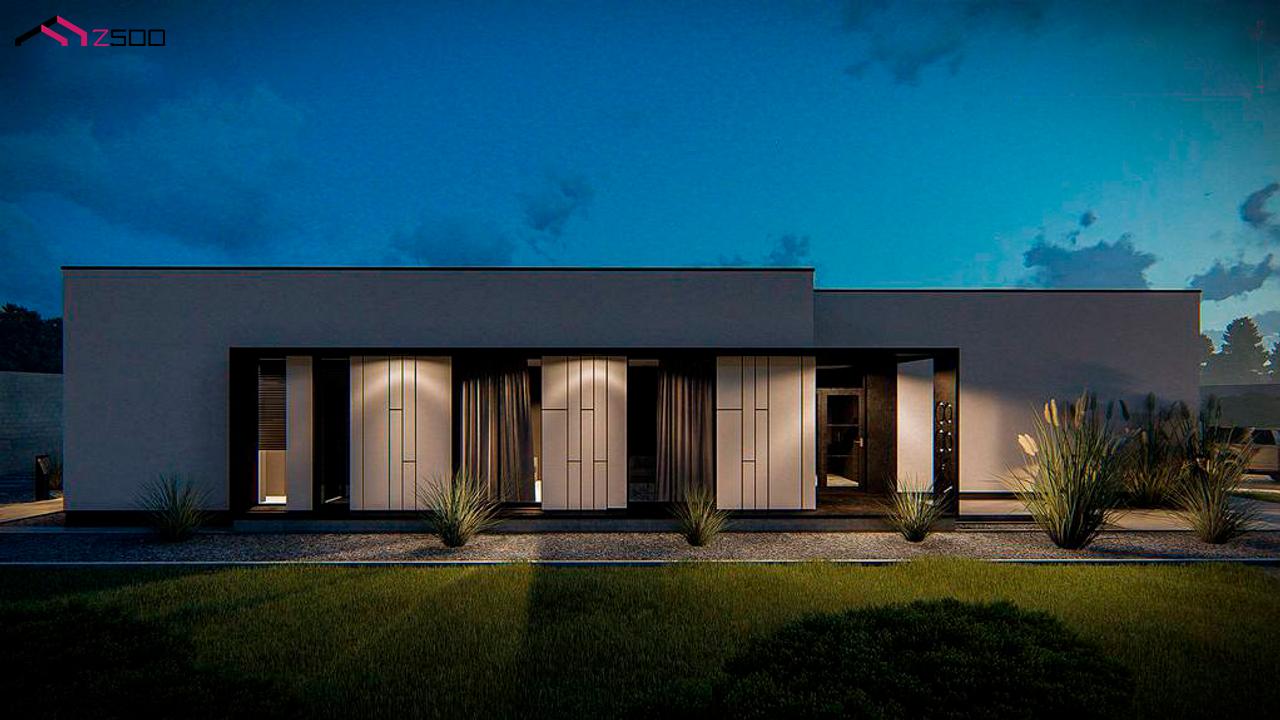 Zx88 представляет собой проект современного одноэтажного дома с плоской кровлей.