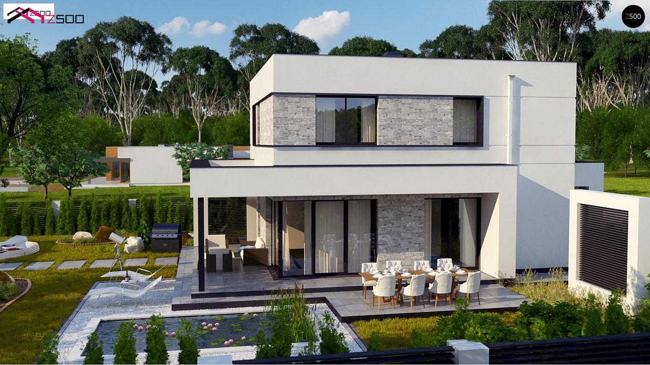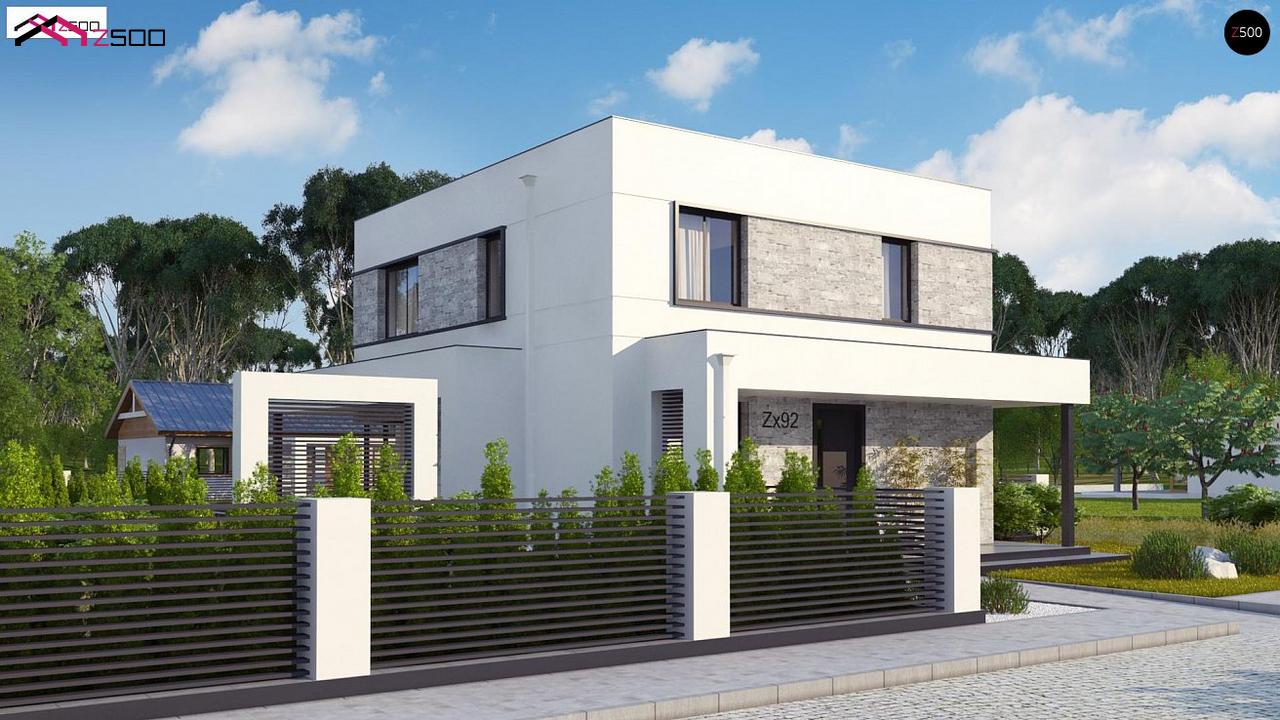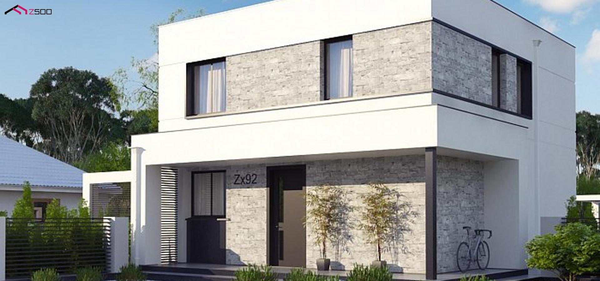 Вариант двухэтажного дома Zx92 с плоской кровлей с плитами перекрытия