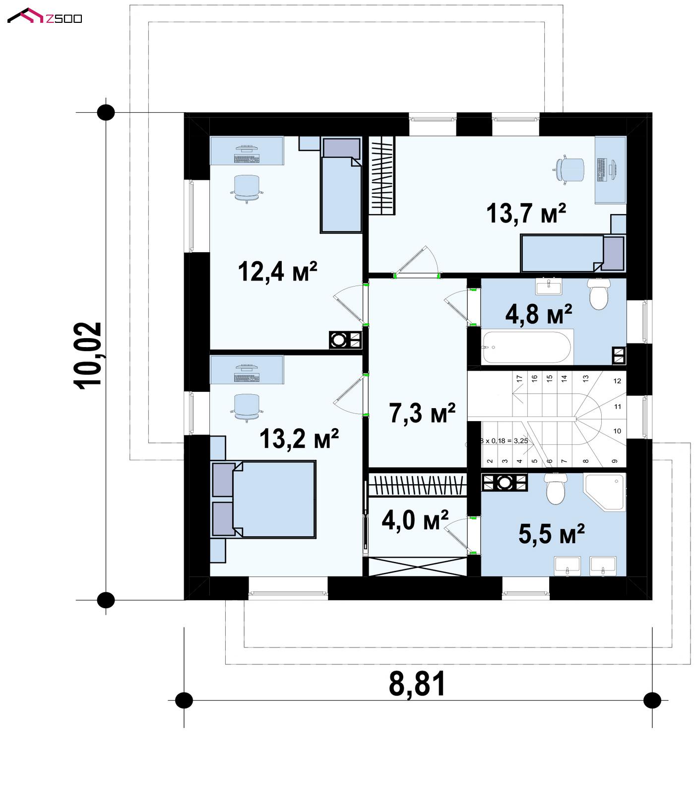 Zx92 pk представляет собой вариант двухэтажного дома Zx92 с плоской кровлей с плитами перекрытия.