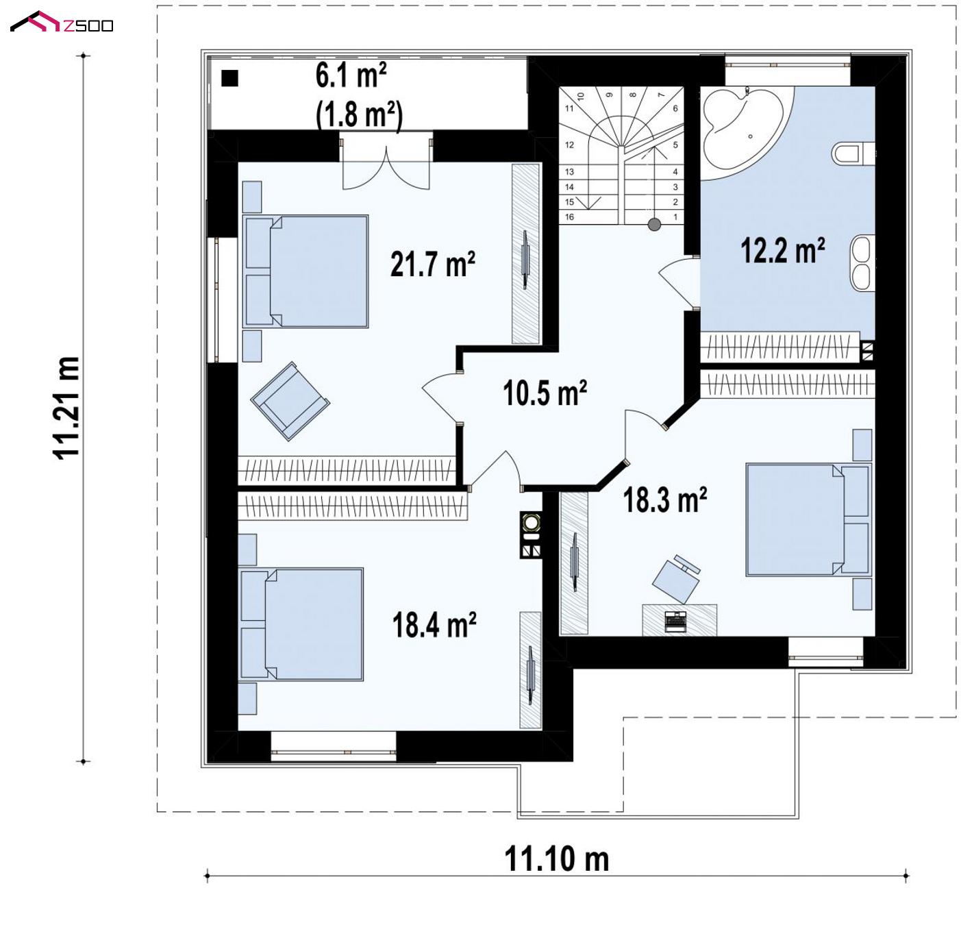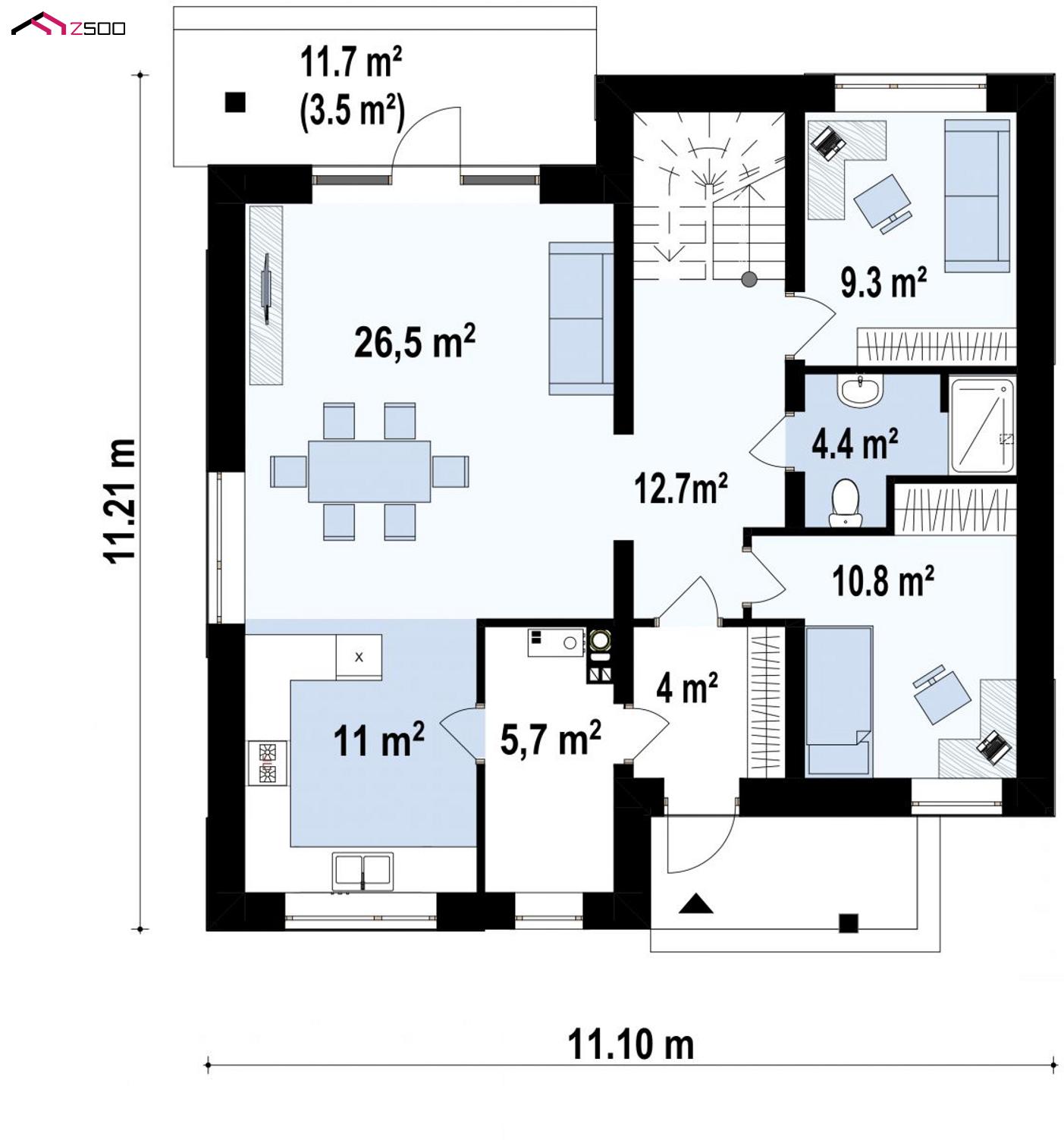 Zz1 v1 представляет собой версию современного двухэтажного дома Zz1 c измененной планировкой.