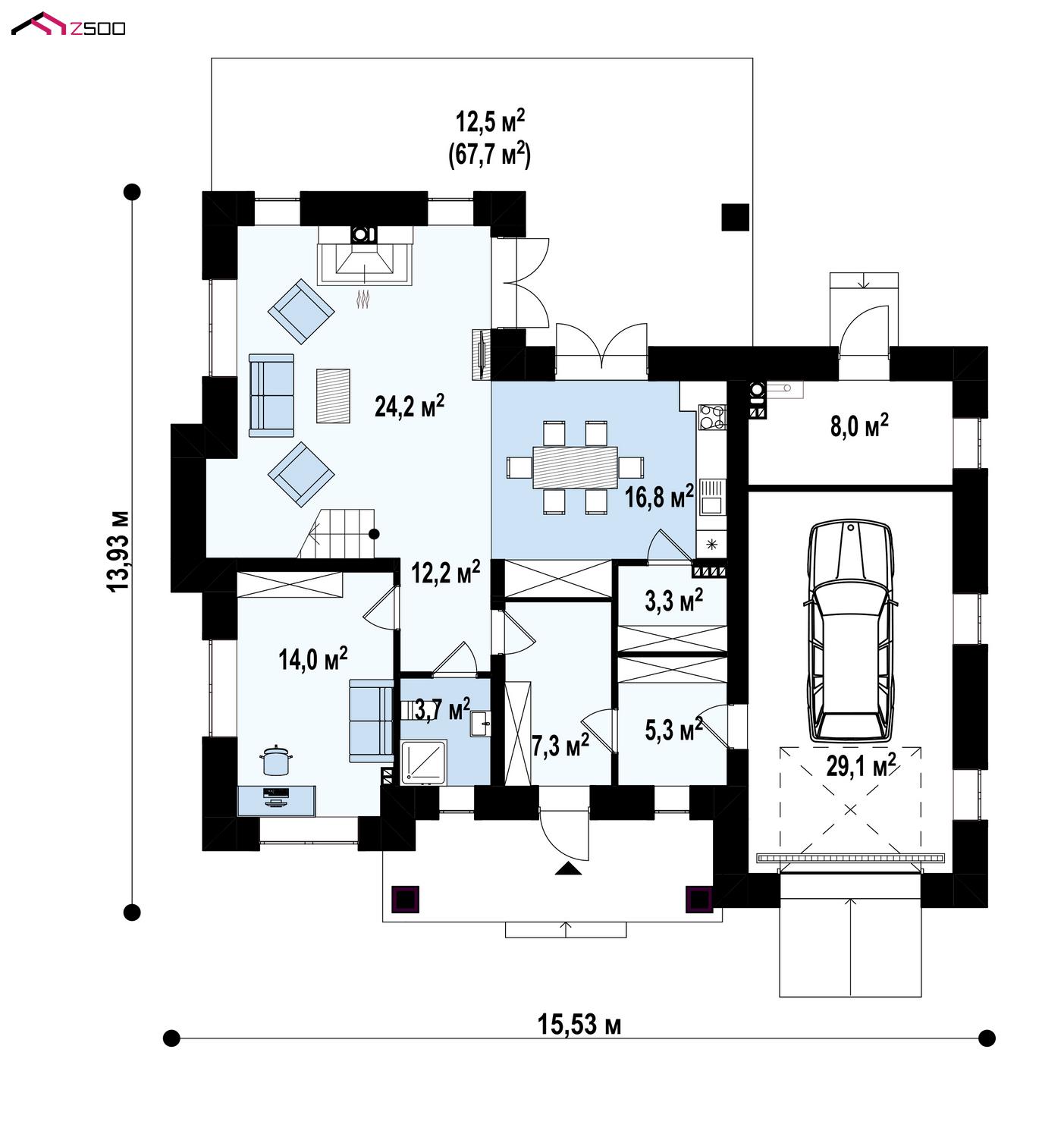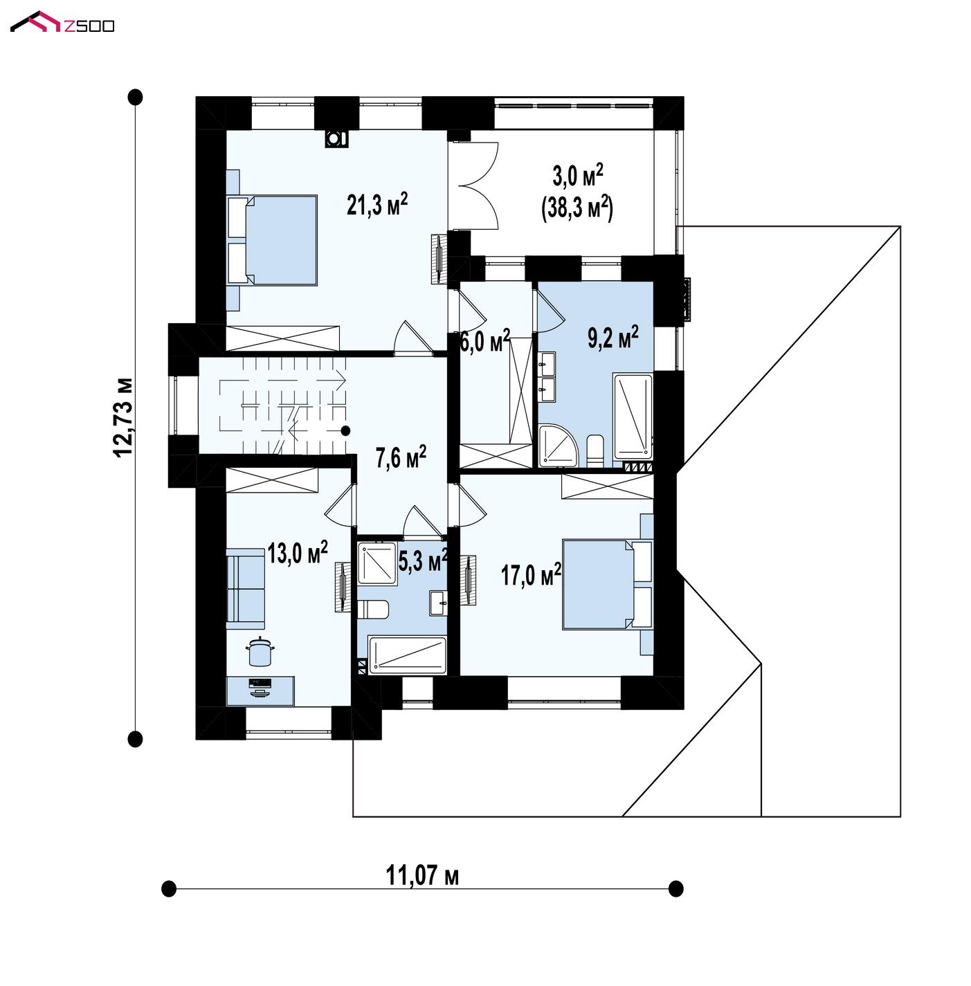 Zz2 k представляет собой вариант двухэтажного дома Zz2 с облицовкой кирпичом.