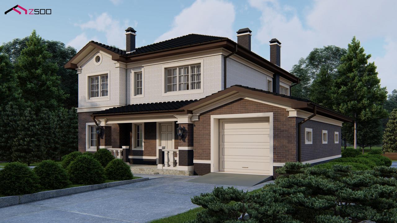 Вариант двухэтажного дома Zz2 с облицовкой кирпичом