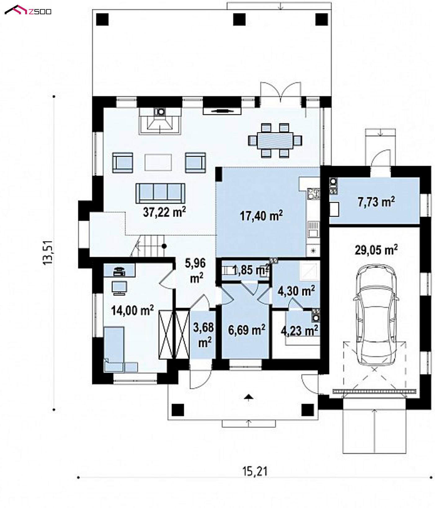 Проект Zz2 L + это отличное решение для тех, кто хочет построить для своей семьи большой, красивый, просторный дом со светлыми комнатами и удобной террасой.