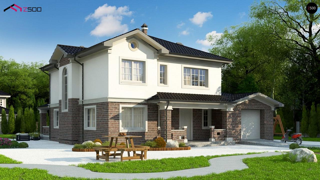 Zz2 L + представляет собой проект двухуровневого просторного дома с гаражом на одно авто.
