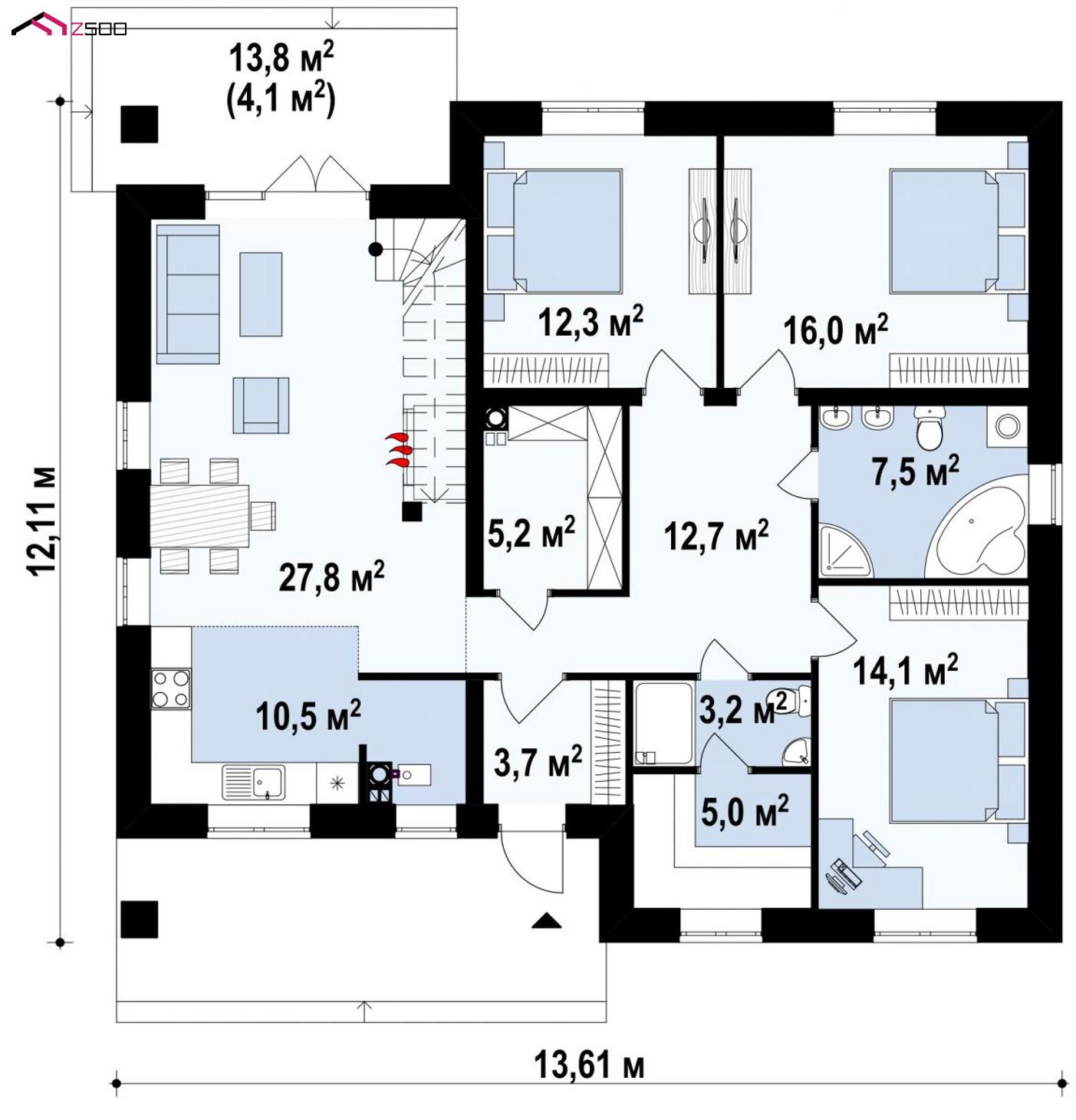 Zz230 представляет собой комфортный одноэтажный дом с мансардой.