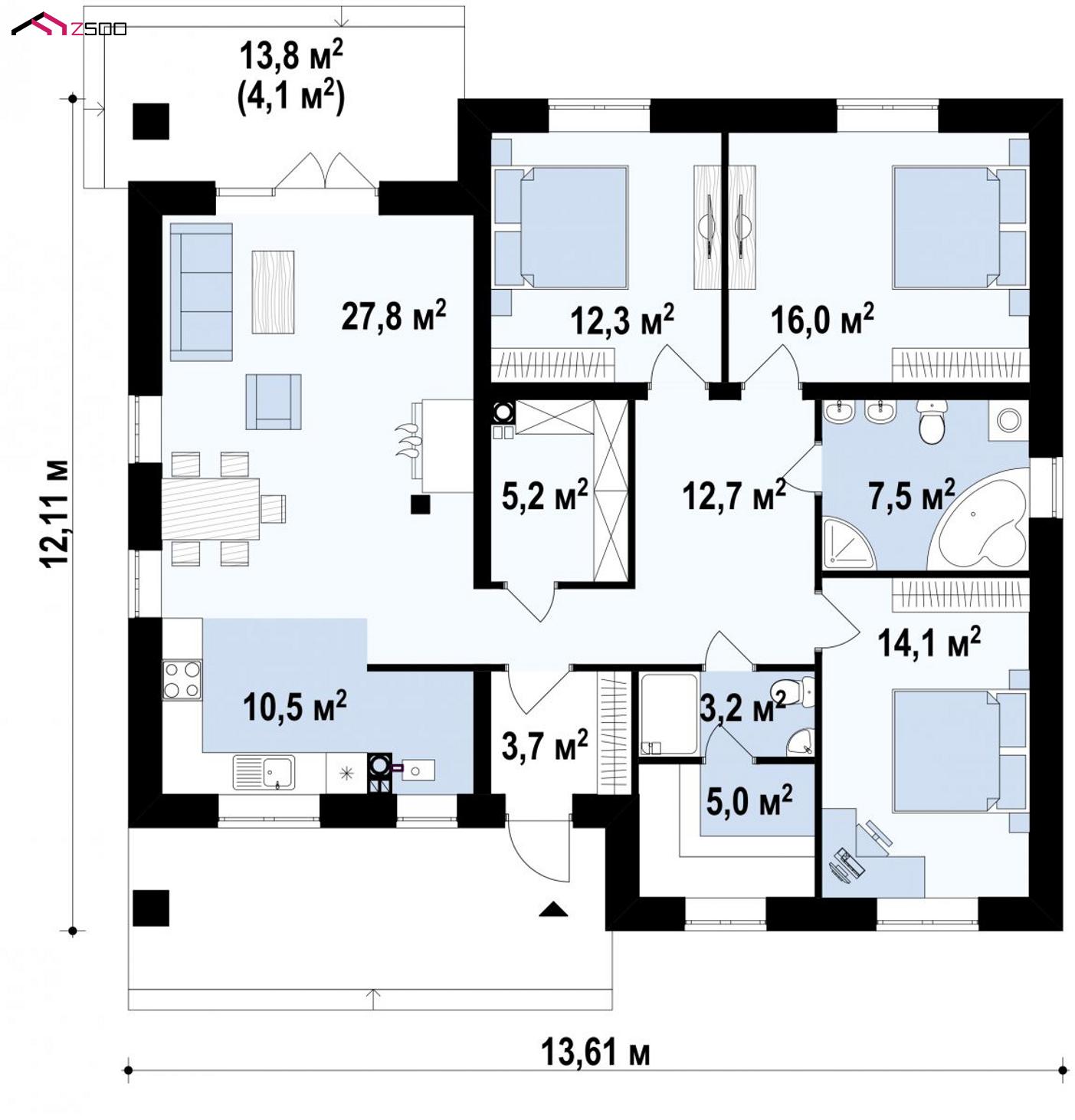 Zz230 V1 представляет собой вариант дома Zz230 без мансардного этажа .