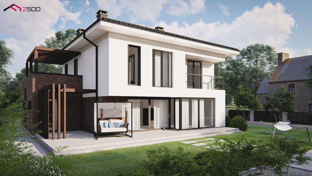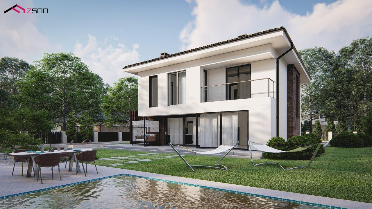 Zz255 современный двухэтажный дом с гаражом на две машины.
