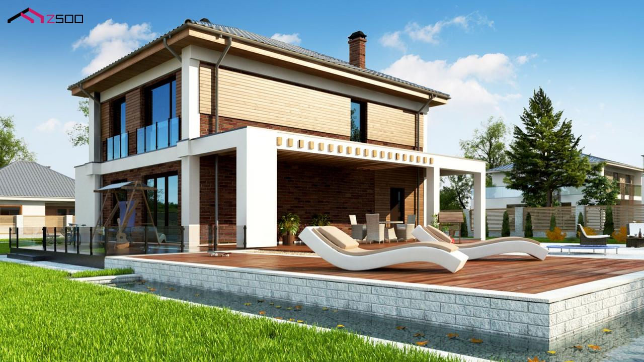 Zz4 представляет собой двухэтажный коттедж с уютной террасой и балконом.