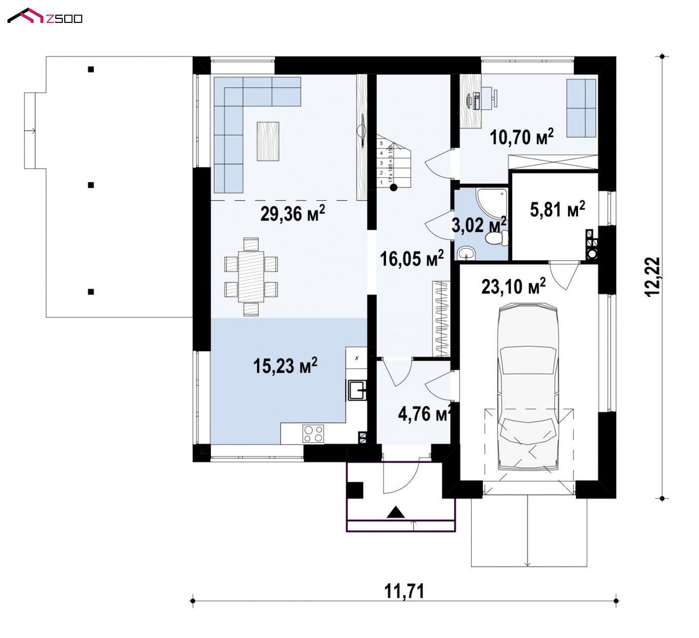 Zz5 представляет собой современный двухэтажный дом с гаражом.