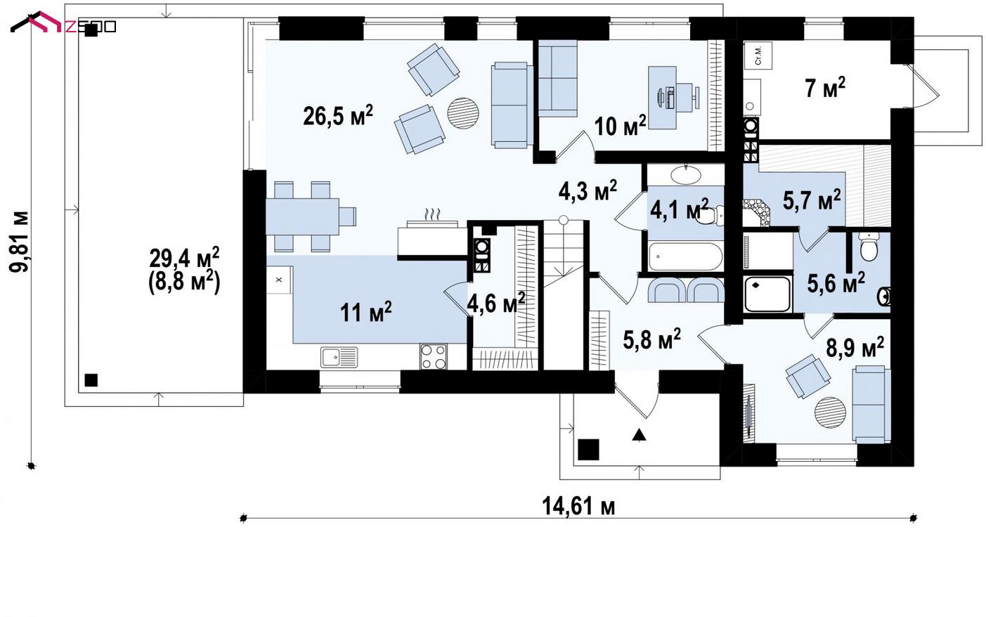Проект Zz63 B разработан специально для тех, кто хочет построить для своей семьи просторный, комфортный, надежный и красивый дом.