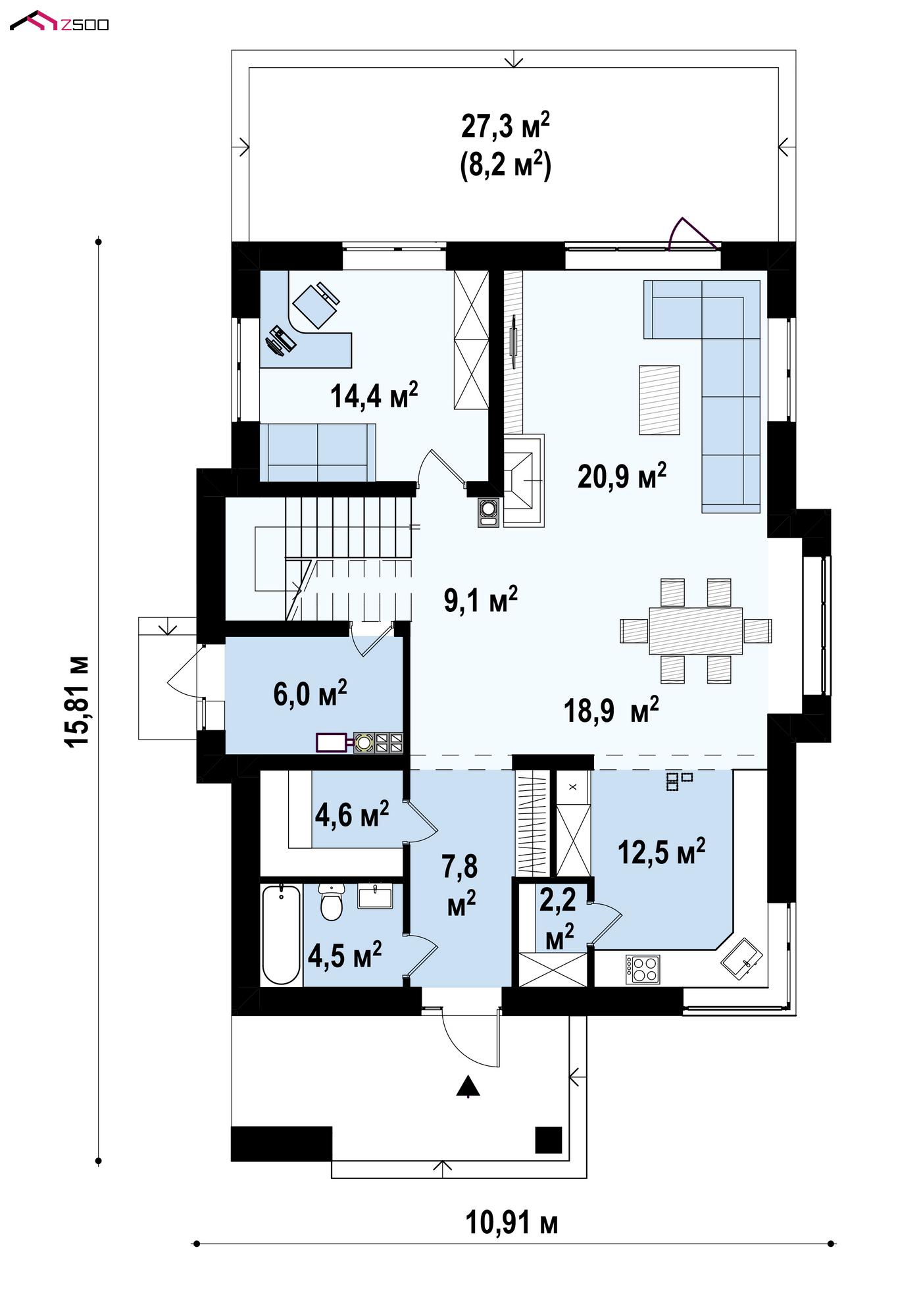 Проект Zz7 – это разработка для ценителей функционального интерьера и европейского стиля архитектуры. В доме имеется все необходимое для комфортной жизни.
